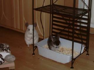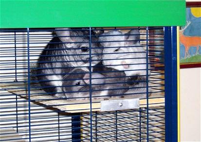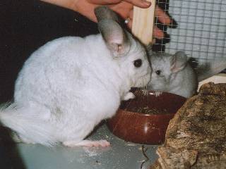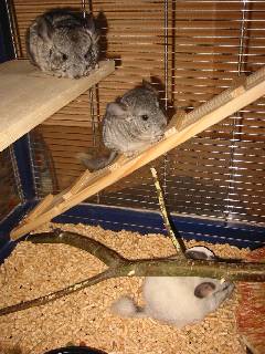 Das sind Scarlett (Mama), Purzel (Standardtochter) und Shiva (Silberscheckentochter). Alle Drei sind gemeinsam , zu ihren neuen Futterspendern, umgezogen.